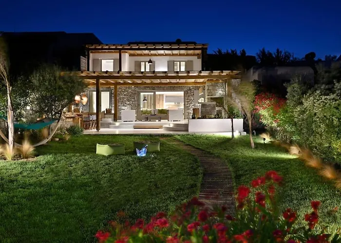La villa Beachfront Villa Cohyli, Kalafatis Beach, de 200 m^2, se sitúa a unos 25 minutos a pie de los Mykonos Vioma Organic Farm y a 0,5 km del Aeropuerto Nacional de Míconos. Esta villa de 200 m^2 dispone de un balcón, una zona de comedor y un sofá en las habitaciones.